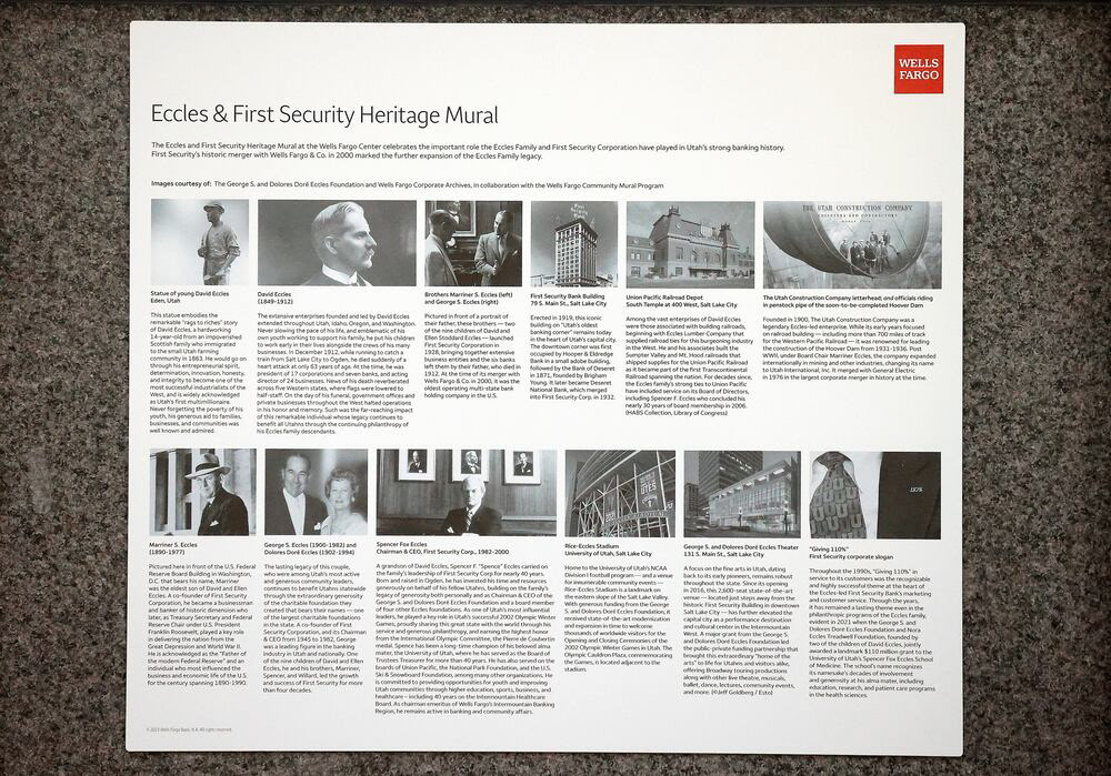 The Eccles and First Security Heritage Mural, prominently displayed in the Wells Fargo